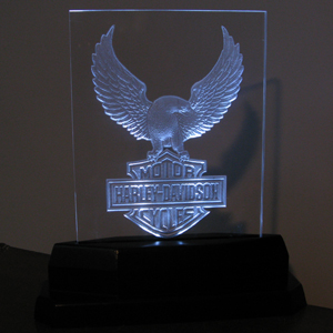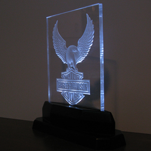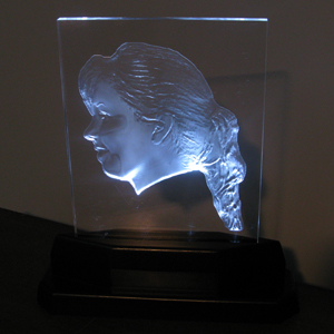 Acrylic Gifts and Keepsakes - This is an 8" x 10" x 1/2" thick acrylic piece that has been carved out on the backside and set in an LED light base to illuminate the carving with a very dramatic effect. This example shows how we can take a photograph and turn it into a unique, personal, three dimensional keepsake.