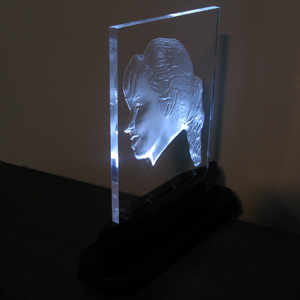 We create three dimensional, carved acrylic pieces to commemorate or idolize anyone or anything. They are offered stand alone, on custom bases or on LED light bases. The pieces can be of anyone or anything that is important to you. They could be for presentations, trophies, gifts, collectables or keepsakes. They can be engraved with personal information such as names, dates, occasions, etc.
