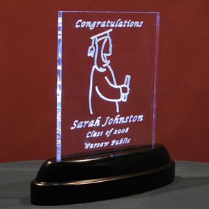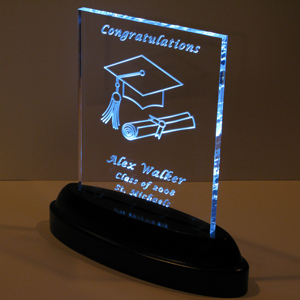 Graduations - These 8" x 10" x 1/2" thick, LED illuminated acrylic pieces can be modified for any type of graduation. It can be male or female and can even include 3D institutional logos.