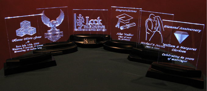 The following are only a few examples of what can be done. What can be carved into acrylic is limited only by your imagination. Contact us to discuss your ideas.