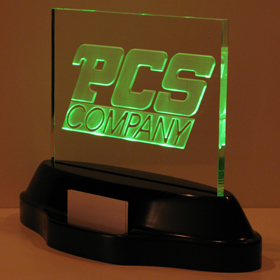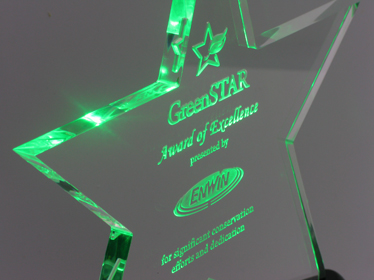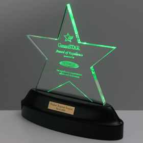 High End, Illuminated Awards - When you want your awards to be unique, cherished and sought after. The example shown here was created for a utility company to reward establishments for their energy conservation efforts. This "GreenStar Award Of Excellence" was custom made into a star and lit in green with LEDs.