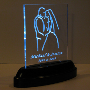 Wedding Announcements - This 8" x 10" x 1/2" thick, LED illuminated acrylic piece was displayed at the head table with the wedding cake but will forever remind the couple of their special day.