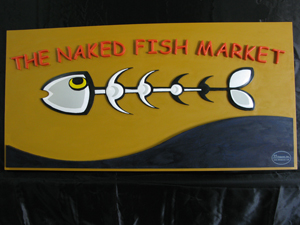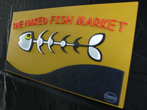 The Naked Fish Market - This is a full three dimensional sign that was CNC cut out of a single piece of high density, polyurathane sign foam. It is about 4 feet wide by 2 feet high. (BTW - This ia a great takeout restaurant in Kingsville, ON. Tell Rob we said Hi! Check them out at The Naked Fish Market)