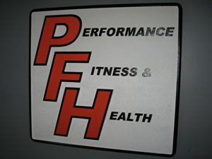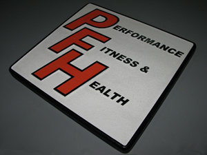 Performance Fitness & Health - This dimensional sign was created using CAD masks and sandblasting. It is about 2 foot square. (BTW - Check them out at Performance Fitness and Health)